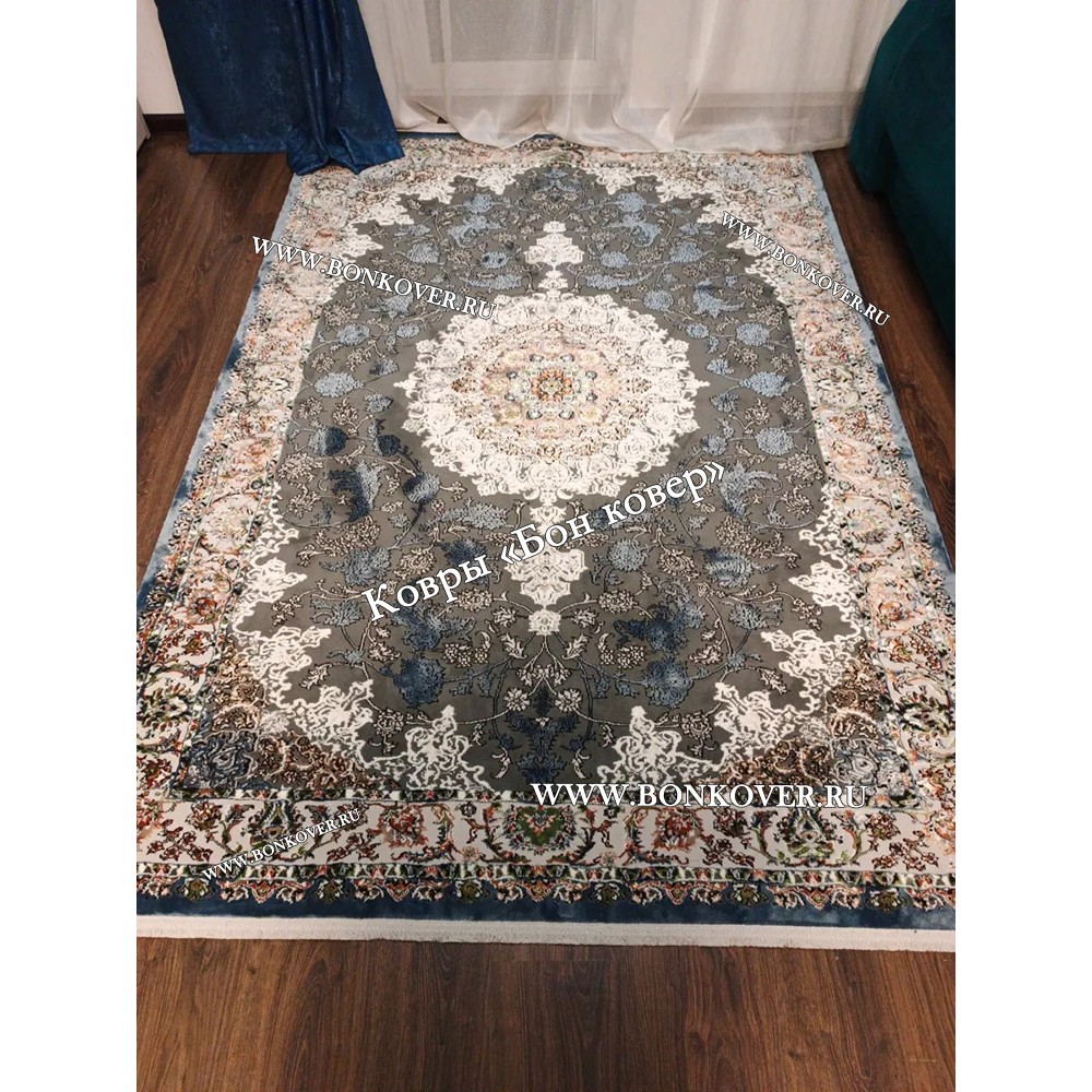 Шикарный Турецкий Ковер Для Медальон Дизайн 30573 Синий наполняет интерьер квартиры теплом и уютом, гармонично сочетает в себе изящество и красоту. Он соткан из износостойких материалов, комфортный и долговечный.